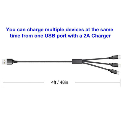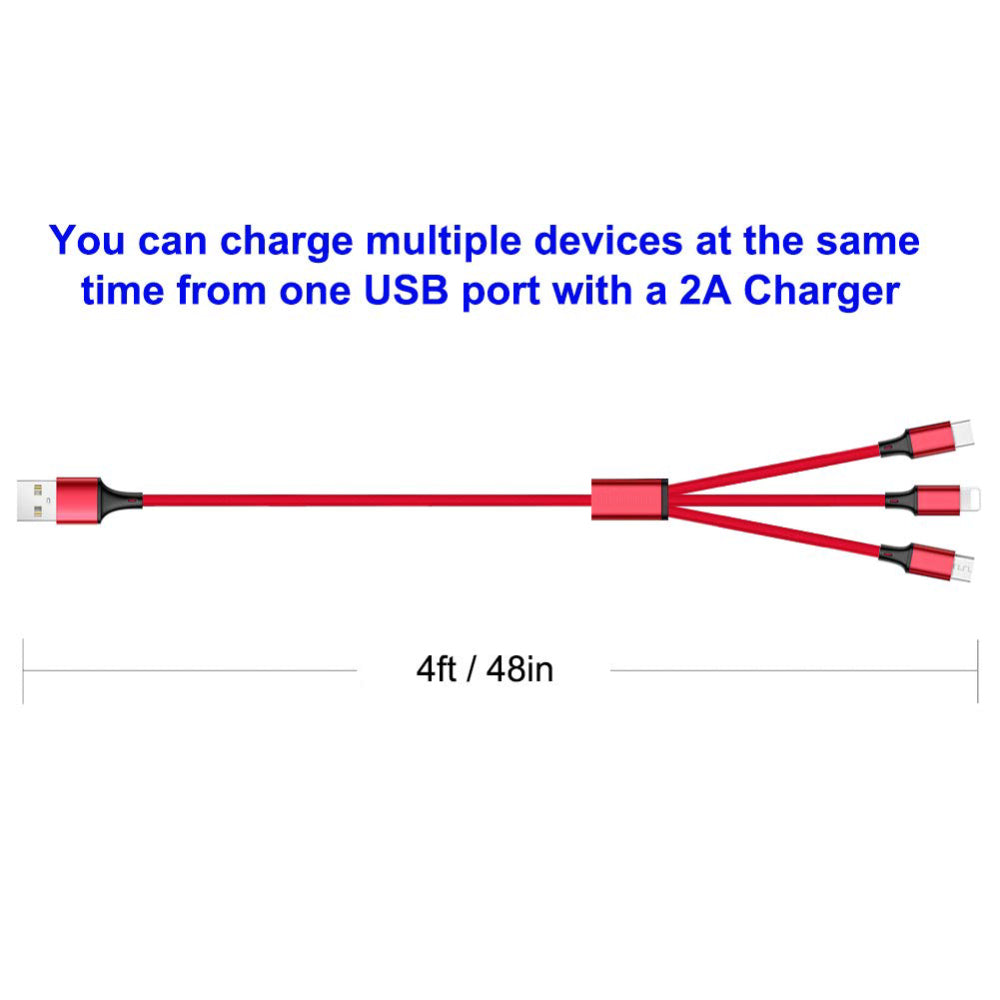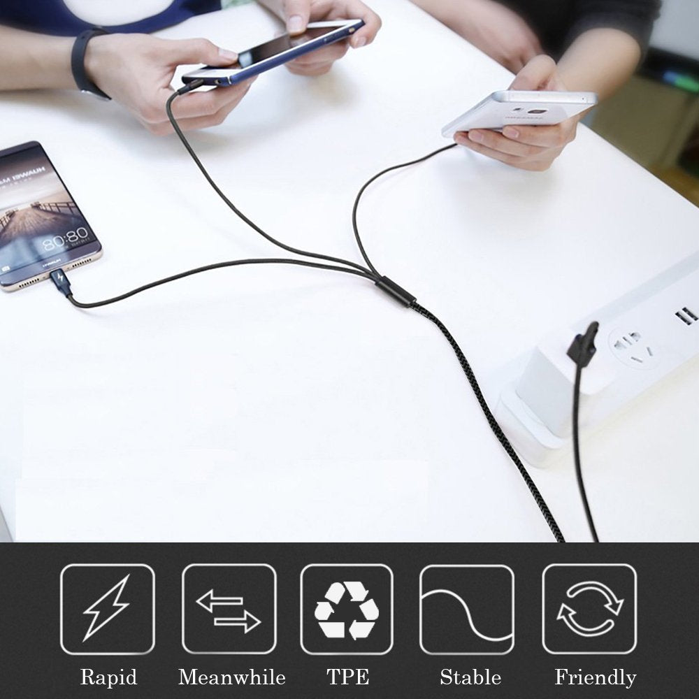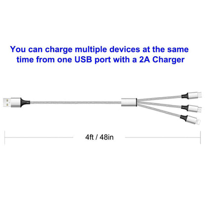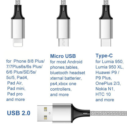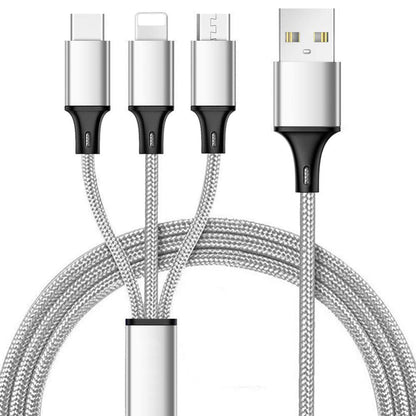 3 in 1 Nylon Charging Cable is the perfect accessory for your charging needs. Length is 1.2m.