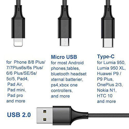 - 3-in-1 Multi Charging Cables: Including Micro USB and Type-C USB C Support to charge most of the Mobile phones available on market. Please note it is just for charging not for Sync Data.