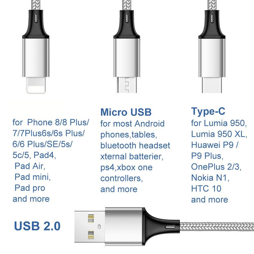 - This multi USB cable Made of the extra strong durable wire core and nylon braided with aluminium. Premium ports enhances the durability, safety and flexibility.