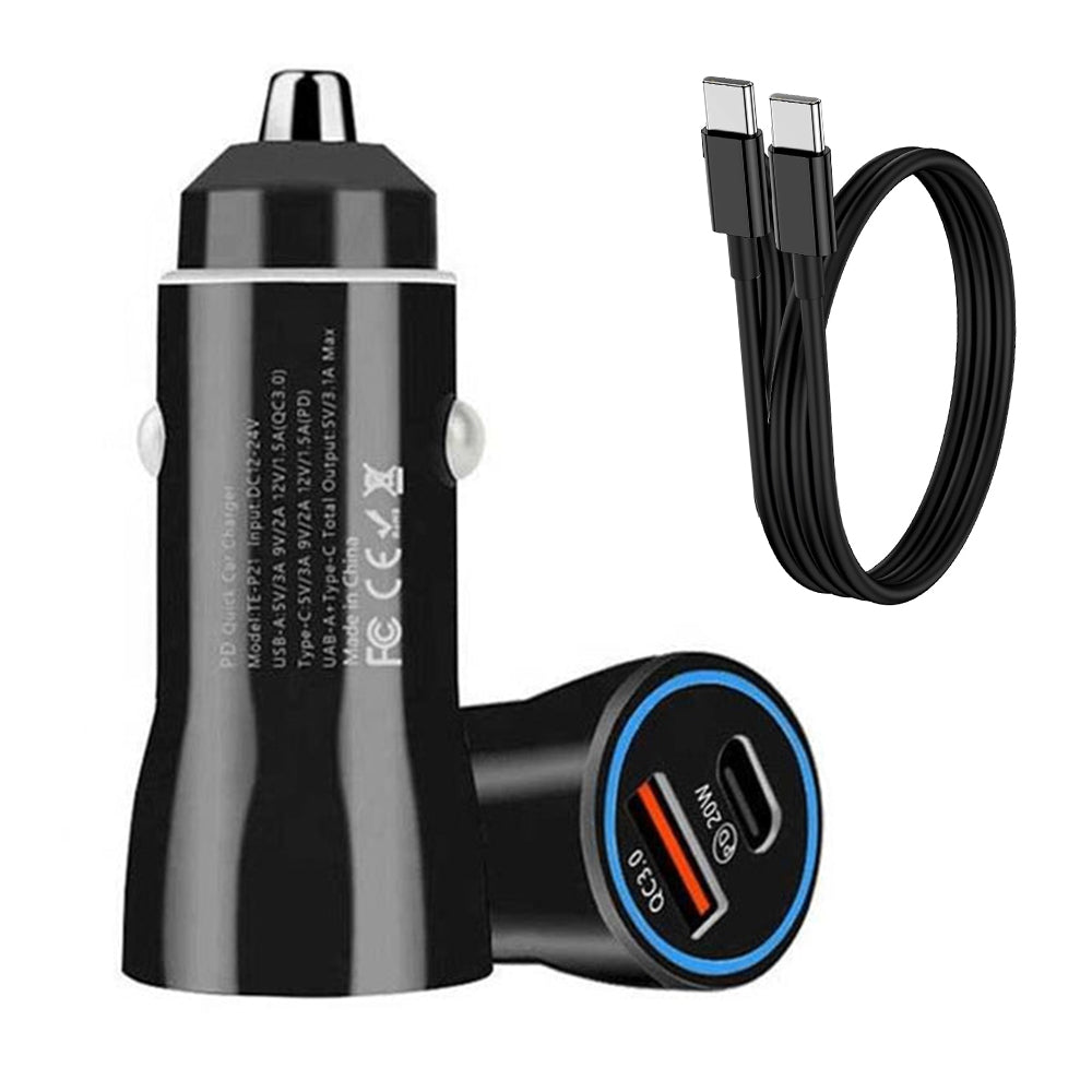 Dual 20W Fast Car Charger with USB-C to USB-C cable