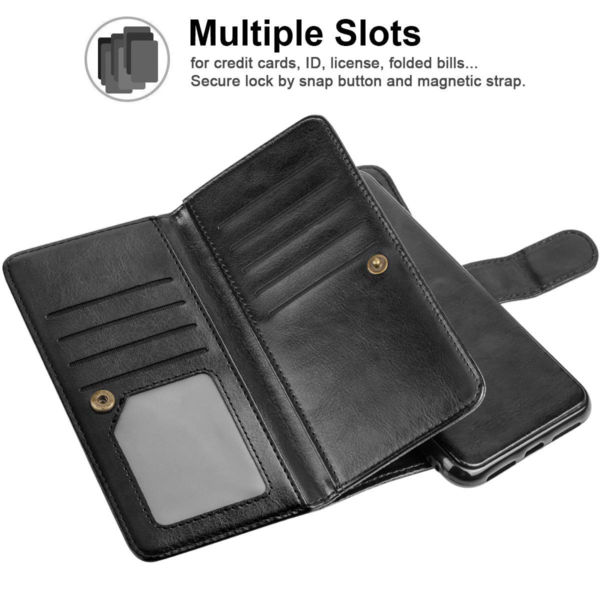- Strong magnets - The back of the case shell has magnets so you can detach the phone easily from the wallet.