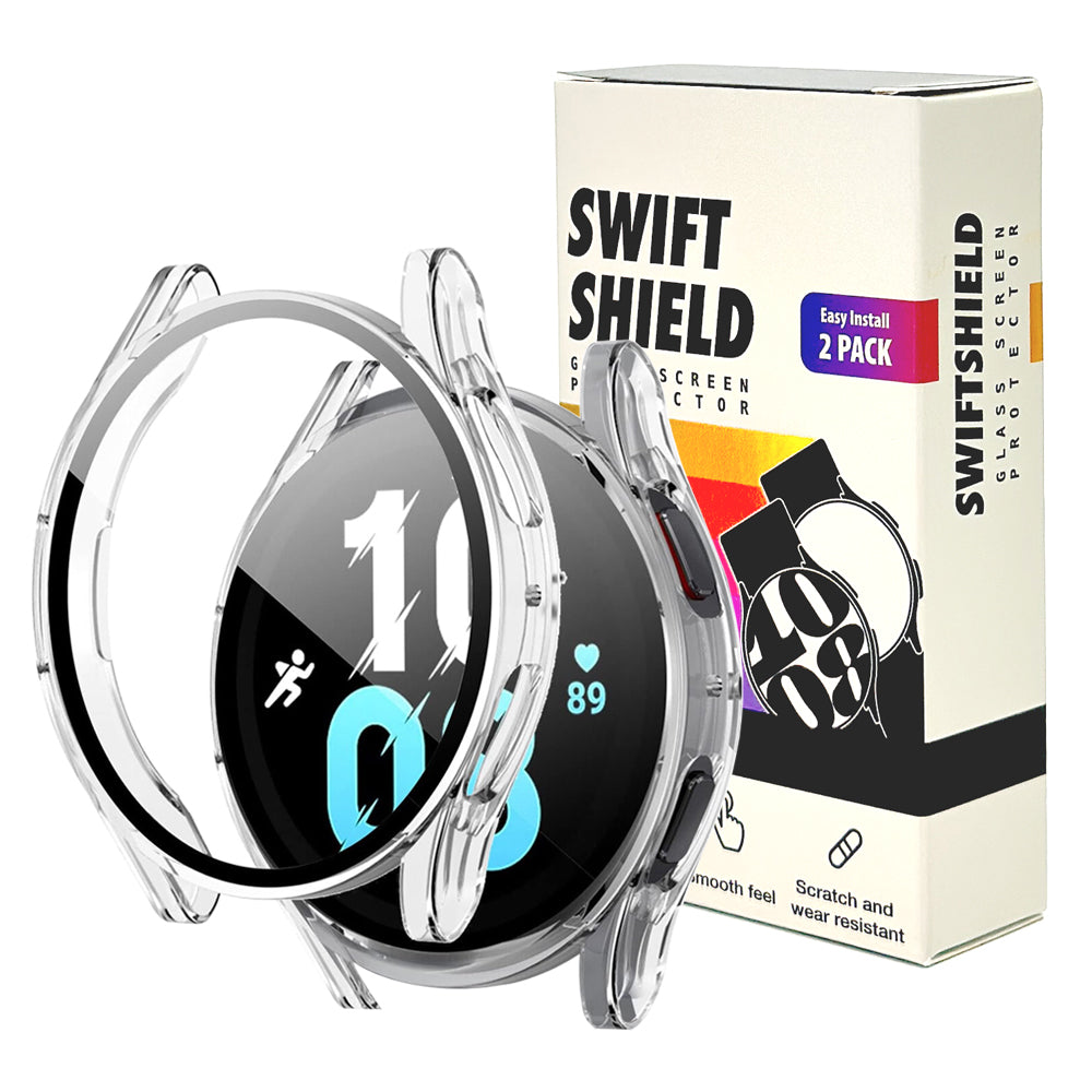 Samsung Galaxy Watch 5 44mm Case with Glass Screen Protector by SwiftShield (2 Pack - Clear)