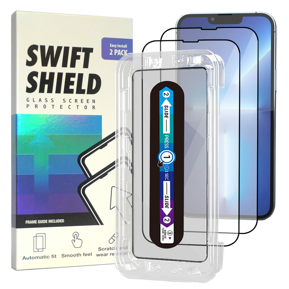 SwiftShield Clear Premium Tempered Glass Screen Protector Alignment Kit for iPhone 13 Pro [2-Pack] Protect your precious device with a layer of tempered glass (goodbye to scratches and cracks!). The SwiftShield Clear Premium Tempered Glass Screen Protector Alignment Kit ensures precise installation for your iPhone 13 Pro, so you can have peace of mind and a crystal-clear view at all times.