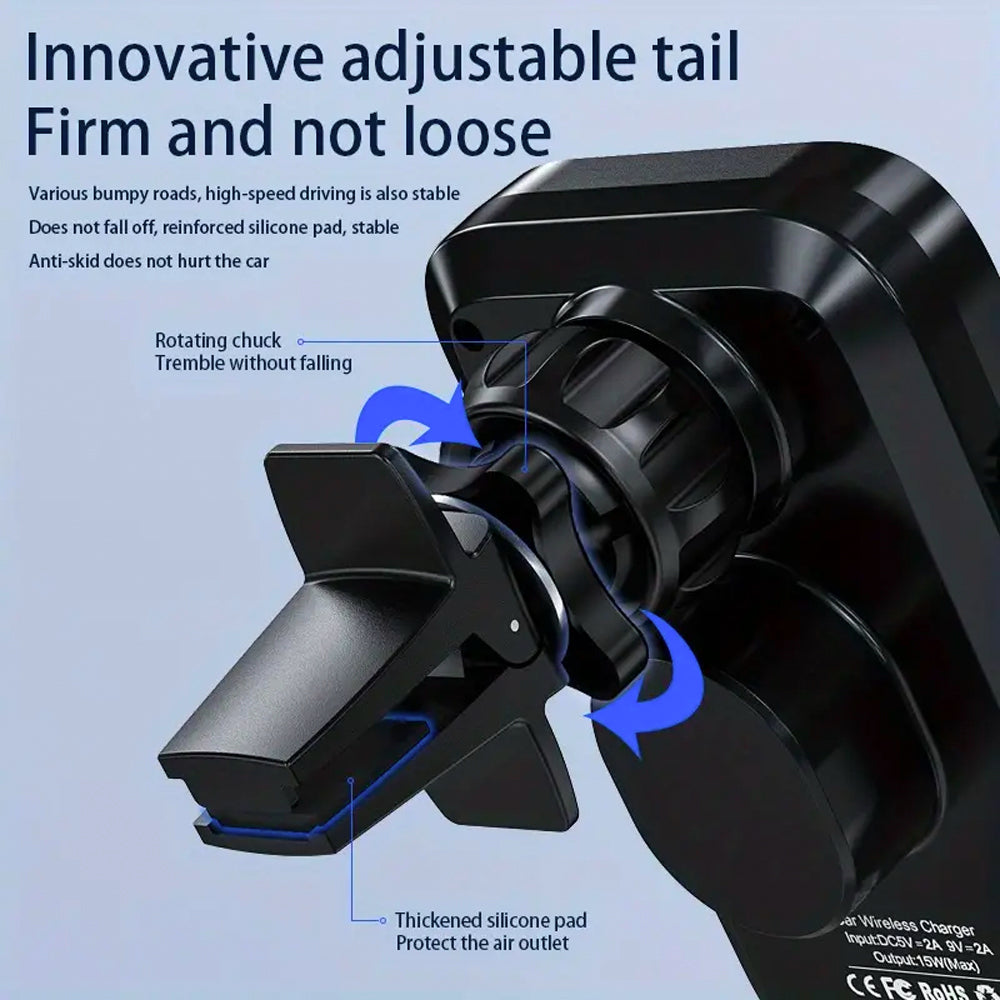 - The car air outlet clip-type wireless charger, thickened and sturdy mobile phone bracket, will not easily move or fall off even in high-speed driving, ensuring the stability of the mobile phone.